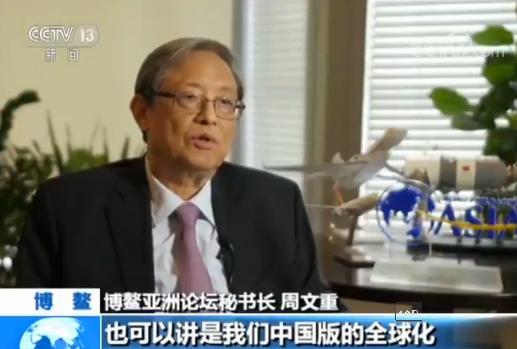 博鳌亚洲论坛秘书长 周文重:中国提出的共商、共建、共享的“一带一路”倡议,也可以讲是中国版的全球化。