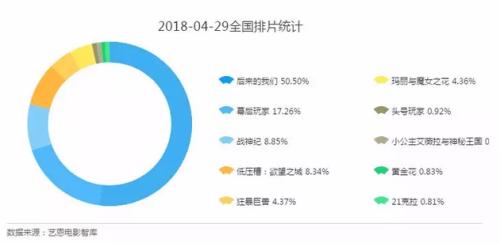 主打的四部影片各有亮点:《幕后玩家》是徐峥监制并主演的悬疑片;《战神纪》是陈伟霆、林允、胡军主演的历史传奇片;而警匪片《低压槽:欲望之城》则是影帝张家辉的导演处女作。但从排片情况来看,《后来的我们》占据了绝对优势,4月29日的排片高达51.0%,比其他三部影片的排片加起来还高。