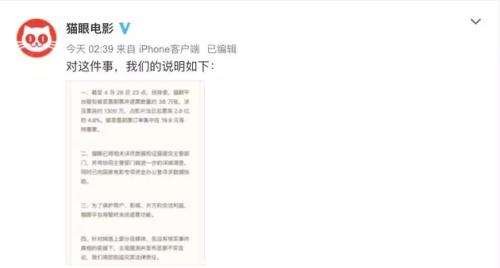 对此,猫眼电影于今日(4月29日)凌晨作出声明称: