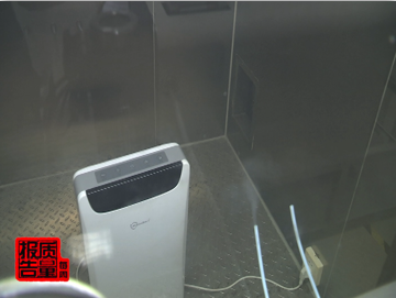 图中正在进行的就是对普通家庭里最常见的有害气体——甲醛的洁净空气量测试。结果显示,标称制造商为河北伟明新能源科技有限公司,生产厂为广州海科电子科技有限公司的样品(型号:KJ225F-A01),甲醛洁净空气量的实测值远远低于其标称值。