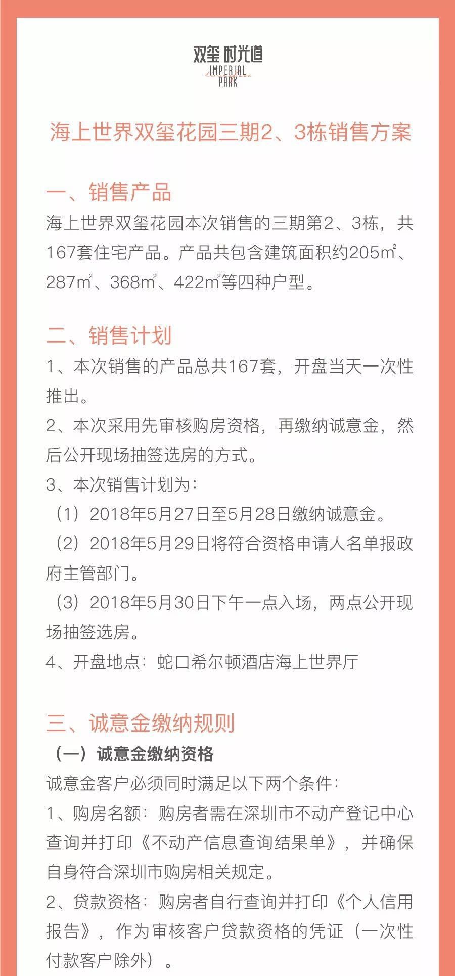 今天(5月26日),招商地产发布了《海上世界双玺花园三期2、3栋销售方案》,券商中国记者从方案获悉,该楼盘将采取政府主管部门+公证处监督抽签的形式开盘,是深圳首个政府监管公开摇号的项目。