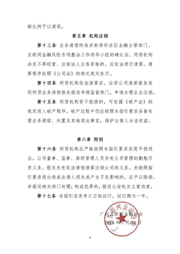 附《广州市网络借贷信息中介机构业务退出指引(试行)》全文: