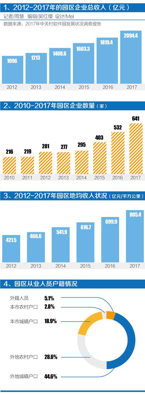 经过18年,这里从一个农业经济主导的地区,转变为著名的高科技园区,被誉为“中国硅谷”。据中关村软件园官网介绍,园区当前集聚了在能源、交通、通讯、金融、国防等国民经济重要领域的行业应用领军企业,代表了战略性新兴技术创新国家队水平;在云计算、移动互联、大数据、互联网金融、人工智能、新型IT服务产业等方面率先形成全国领先的特色产业集群,拥有高度的产业话语权和技术主导权。