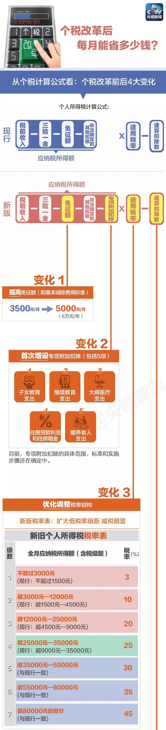 个税“起征点”调整后,你每月将少缴多少钱?一图算清楚