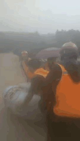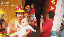 ↑惠州消防官兵营救山体滑坡被困的小孩
