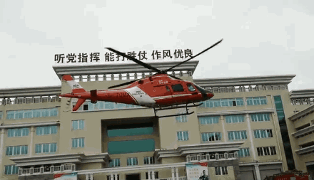 ↑9月1日,一架直升飞机从总队特勤大队飞往惠州受灾地区