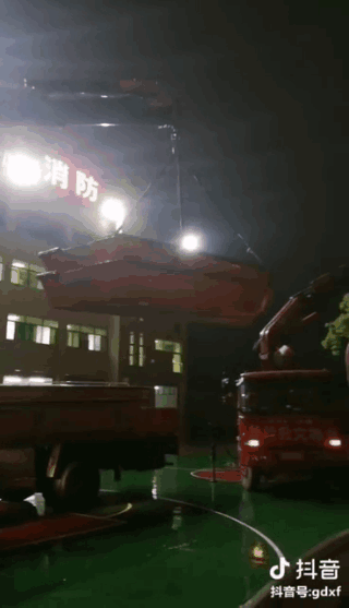 ↑汕头市潮阳区谷饶镇,消防官兵营救和疏散被困群众