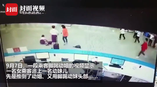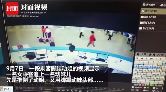封面新闻讯(记者 田之路 李智)9月7日,一段乘客脚踢动妹儿的视频在网上传播甚广,视频中,一名女乘客追上一名动妹儿,先是推倒了动妹儿、又用脚踢动妹头部……