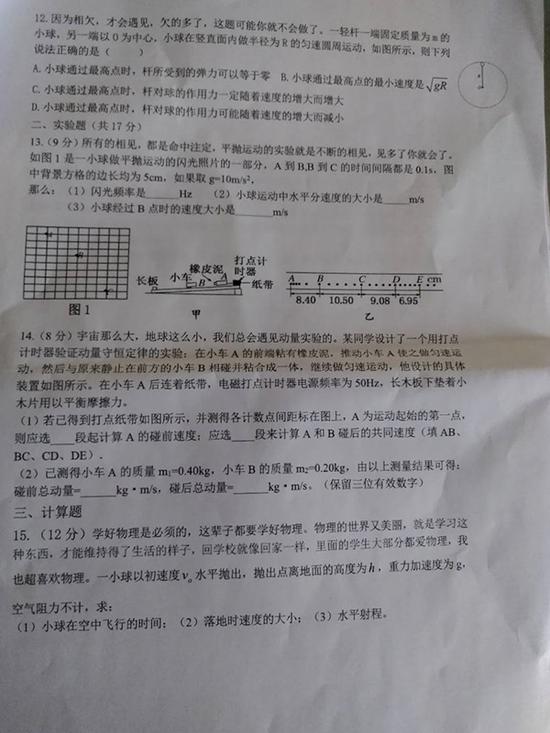 很难想象,这些“段子”会出现在一张物理试卷中。
