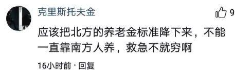 还有网友建议:应该把北方的养老金标准降下来,不能一直靠南方人养。