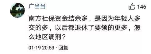 还有网友担忧今后钱不够:南方社保资金结余多,是因为年轻人多交的多,以后都退休了要领的更多,怎么地区调剂?