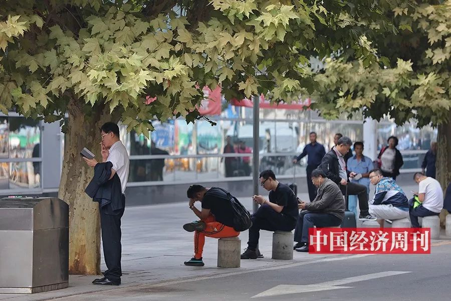 在航站楼外坐着休息的旅客(《中国经济周刊》首席摄影记者 肖翊 | 摄)