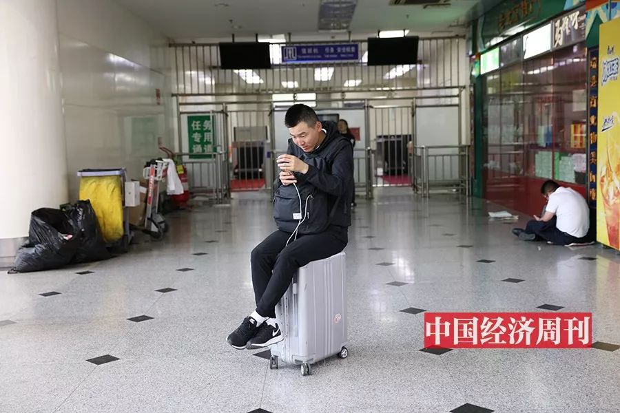 在南苑机场航站楼内候机的旅客(《中国经济周刊》首席摄影记者 肖翊 | 摄)