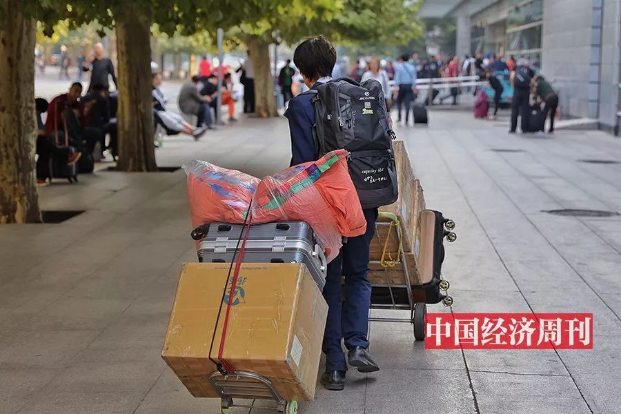 一位拖着厚重行李的旅客(《中国经济周刊》首席摄影记者 肖翊 | 摄)