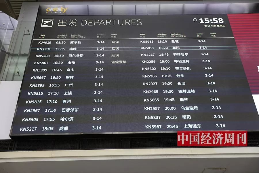南苑机场航站楼内的指示牌(《中国经济周刊》首席摄影记者 肖翊 | 摄)