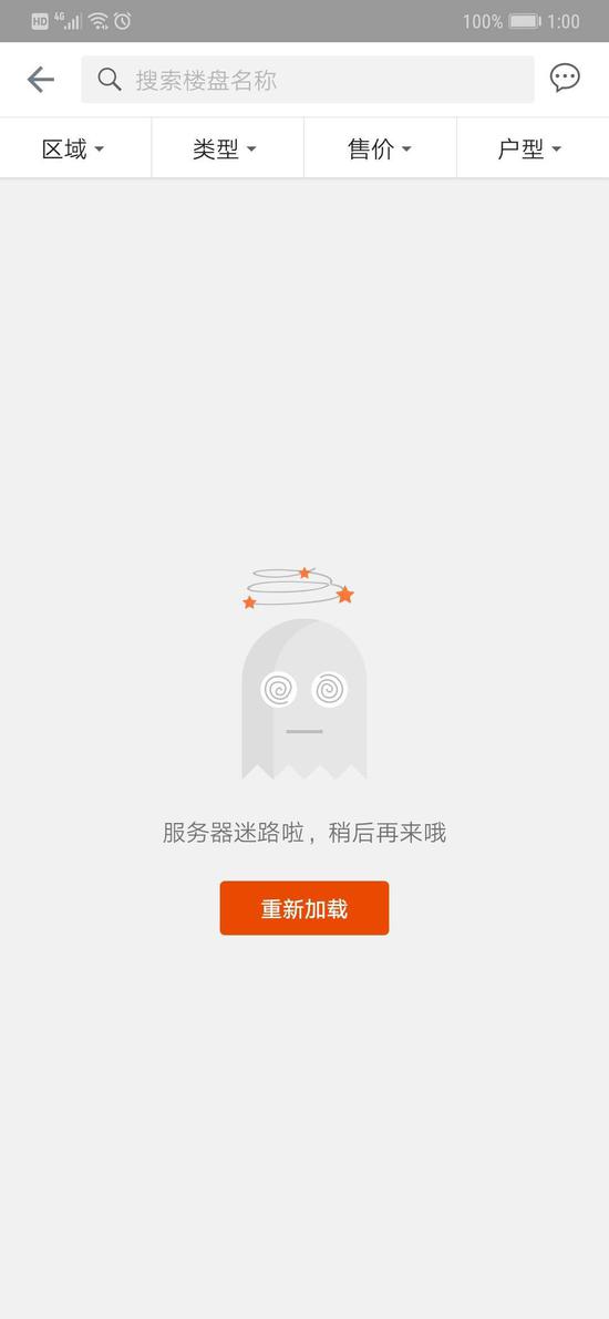 现在登陆爱屋吉屋官网(www.iwjw.com)浏览,其主页仅显示“一楼租房”的单纯页面,已无功能服务,而爱屋吉屋APP,则显示“服务器迷路”。