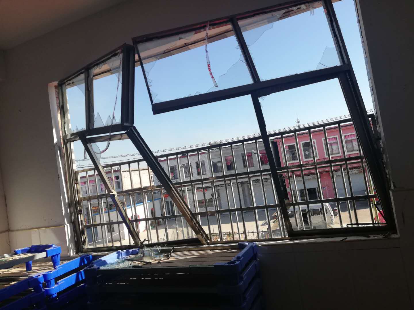 海安中心幼儿园的玻璃和卷帘门都被震坏