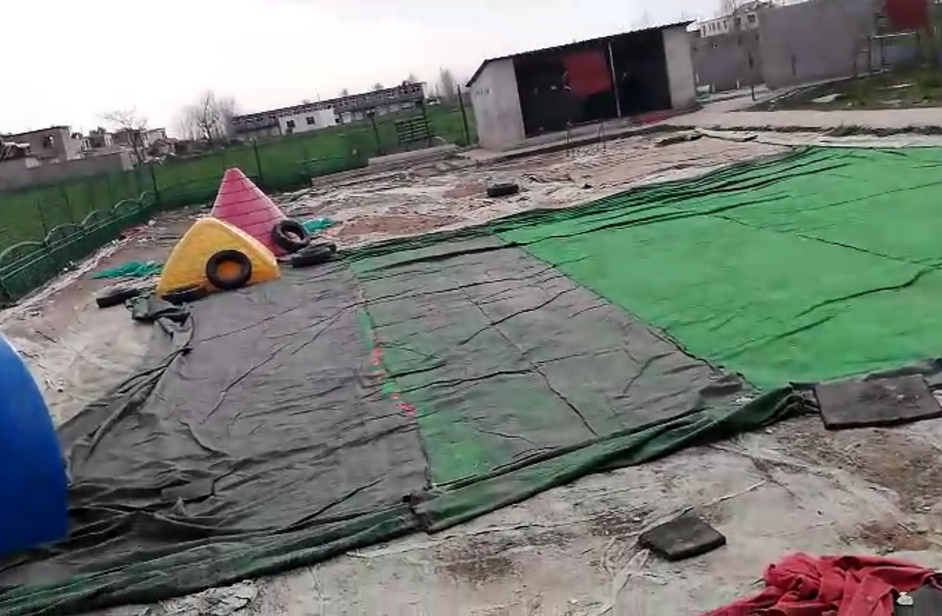 幼儿园的屋顶坏了,房间里没法住人,昨天(3月21)夜里,我带着三个孩子,开车到响水县城,住在我亲戚家里。