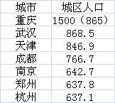 在后备军中,重庆、武汉、天津处于第一梯队,目前城区人口都超过了800万人。