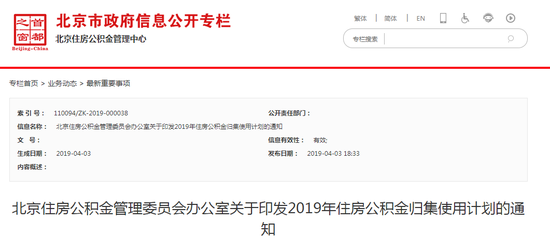 北京住房公积金管理委员会办公室关于 印发2019年住房公积金归集使用计划的通知