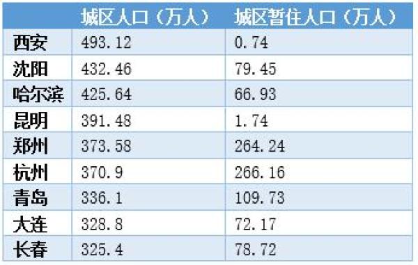 澎湃新闻(www.thepaper.cn)记者查阅住建部最新公布的统计数据,2017年中国城市符合城区人口300万至500万条件的共有沈阳、大连、长春、哈尔滨、杭州、济南、青岛、郑州、昆明、西安等10座城市。