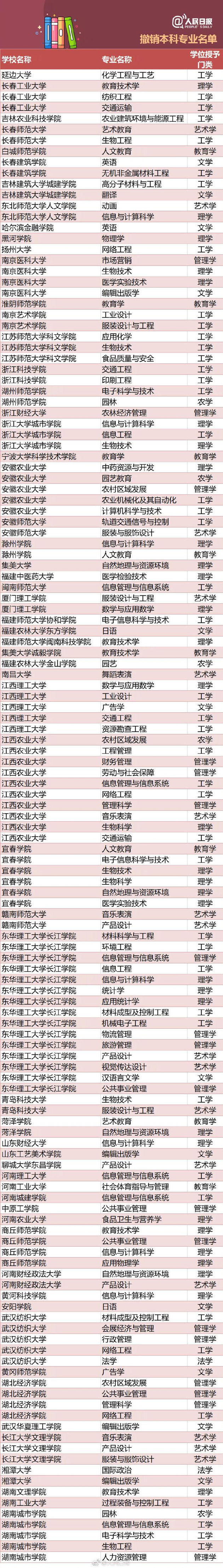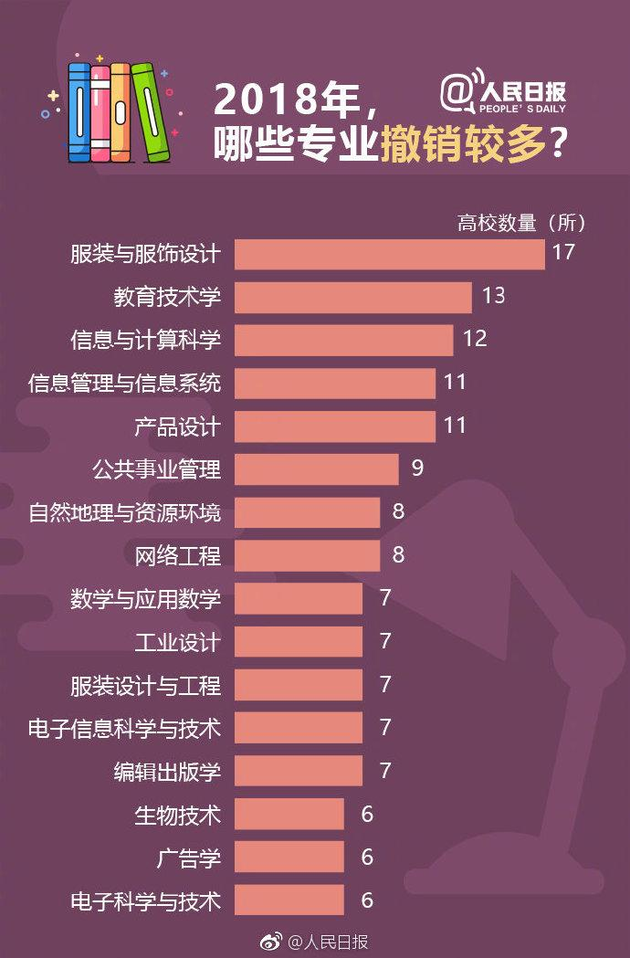 教育部近日公布2018年度《普通高等学校本科专业备案和审批结果》,全国共有416个本科专业被撤销。
