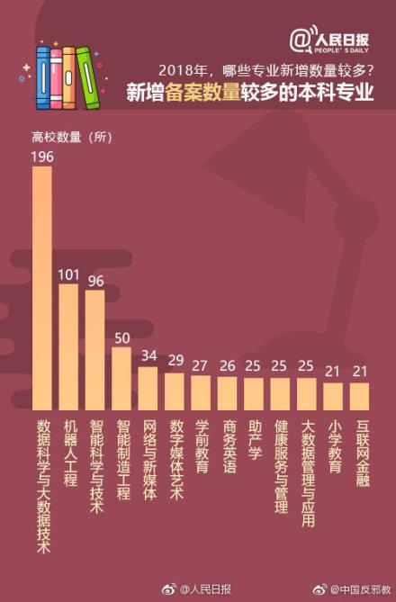 而数据科学与大数据技术、机器人(18.370, -0.48, -2.55%)工程、智能科学与技术成为新增备案数量较多的本科专业。还有哪些专业是“爆款”?哪些专业被撤销?你学的专业还好吗?