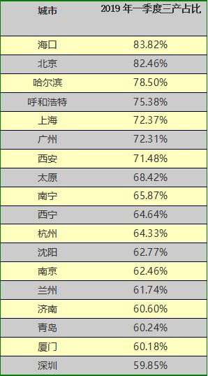 需要注意的是,除了京、沪的服务业增加值占比在七八成外,大批城市的服务业比重已经超过或接近七成,这包括西安、广州、太原、海口、哈尔滨、呼和浩特。这也意味着,这些城市和京、沪一样,服务业成为驱动经济发展主力后,经济或很难再快速增长。