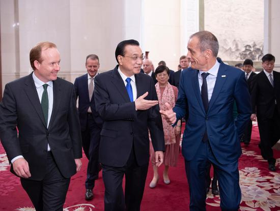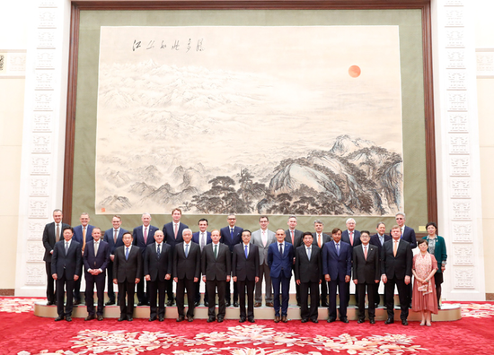 国务院总理李克强6月20日上午在人民大会堂会见来华出席“全球首席执行官委员会”第七届圆桌峰会的知名跨国公司负责人,并同他们座谈。