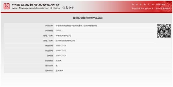 证券时报记者在中国证券投资基金业协会确实找到了两份资产管理计划的公示材料,两个产品分别为“华泰期货紫金财富中金国瑞量化1号资产管理计划”和“广发期货中金国瑞量化2号资产管理计划”。