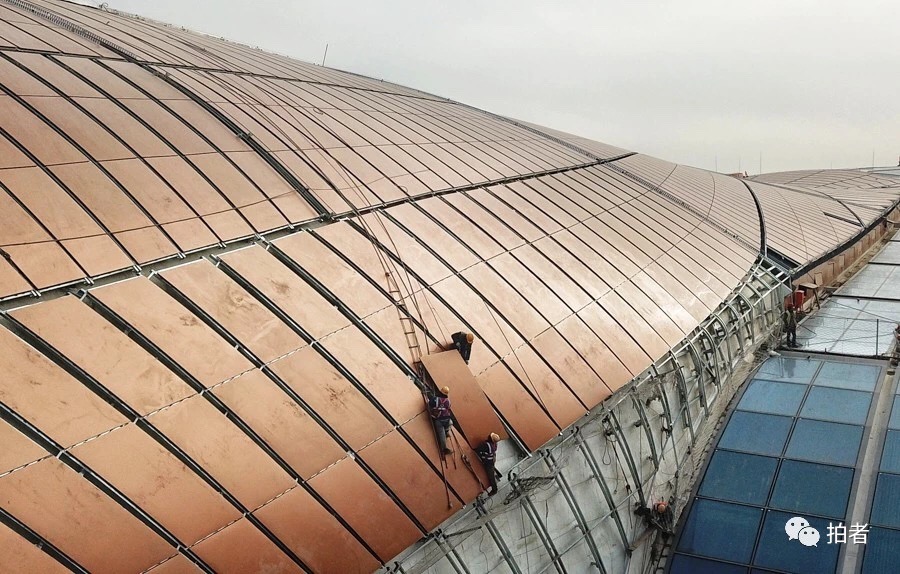 △ 2018年12月26日,北京大兴国际机场,施工人员正在安装航站楼外立面。摄影 / 新京报记者王飞