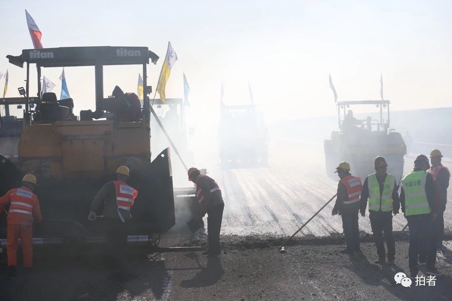 △ 2018年11月21日,北京大兴国际机场高速施工现场,施工车辆正在20米高的桥面上进行铺油作业。摄影 / 新京报记者王贵彬