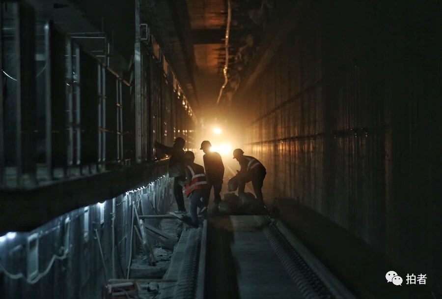 △ 2019年5月24日,新机场线草桥站工人正在隧道内施工。摄影 / 新京报记者王贵彬