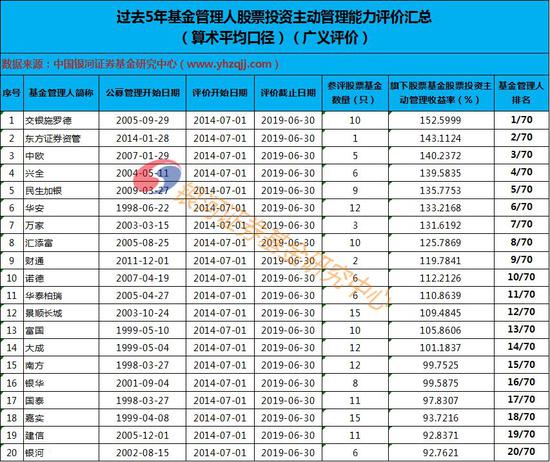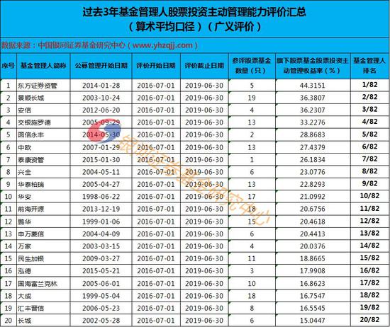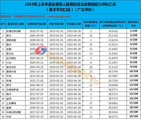 公募基金管理人股票投资管理能力评价(2019年上半年)