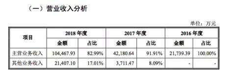 招股书显示,公司2016年至2018年营业收入分别为2.17亿元、4.58亿元、12.58亿元,复合增长率140.63%;净利润分别为0.37亿元、0.78亿元、1.11亿元,同样有着高达70.96%复合增长率。