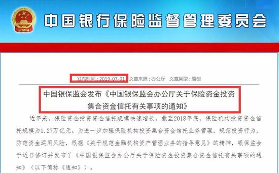 今天下午,银保监会发布《中国银保监会办公厅关于保险资金投资集合资金信托有关事项的通知》,进一步加强保险机构投资集合资金信托业务管理。