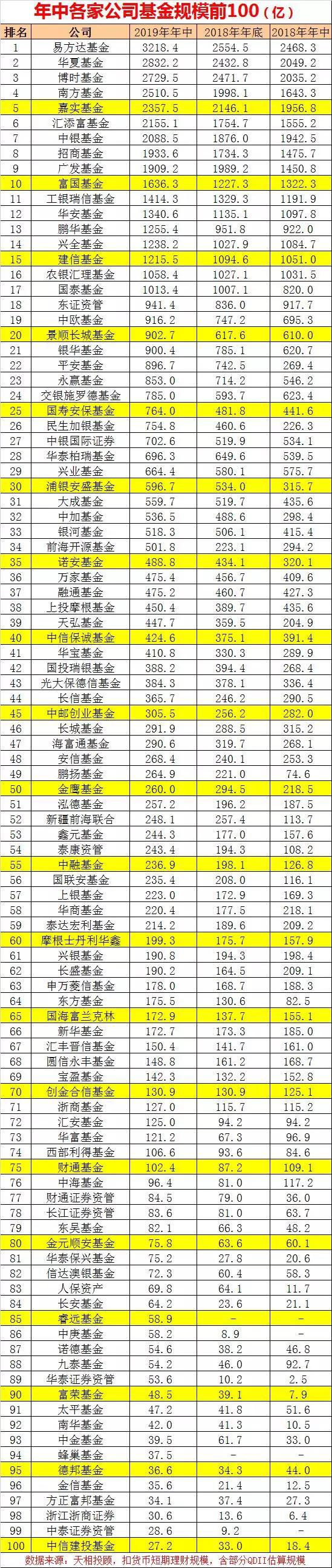 2019年上半年公募基金公司增加了3100多亿,达到了13.3万亿元。基金公司排名大洗牌,华夏基金公司的权益类规模排名第一,易方达基金公司的非货币短期理财规模排名第一。