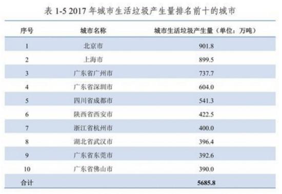 去年年底,生态环境部发布了《2018年全国大、中城市固体废物污染环境防治年报》。年报显示2017年,202个大、中城市生活垃圾产生量为20194.4万吨,而垃圾产生量位居前十的城市所产生的生活垃圾量占全部信息发布城市总量的28.2%。