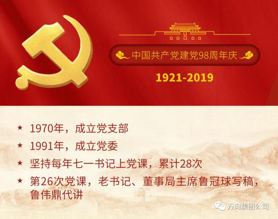 在这个日子集中上党课,是万向集团党委自成立以来就开始的传统之一,就是负责人讲党课。我们1970年成立党支部,1991年获批设立党委,党委书记讲党课到现在我们坚持了28年,未来还会坚持下去。