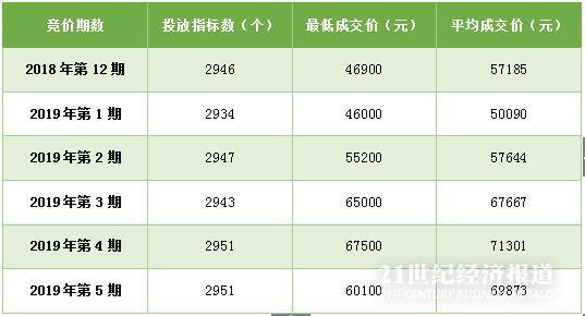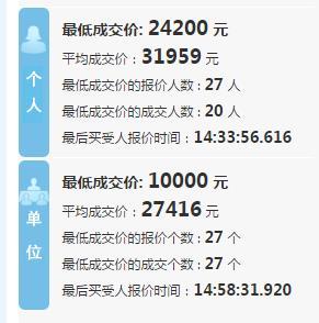下午3点,竞价结果出炉。其中,个人最低成交价为24200元,平均成交价为31959元。相比之下,上一期个人最低成交价为60100元,平均成交价为69837元。
