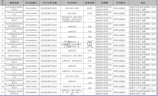 7月9日晚间人民银行官网公布2019年7月非银行支付机构《支付业务许可证》准予续展公示信息,此次17家第三方支付牌照成功续展。