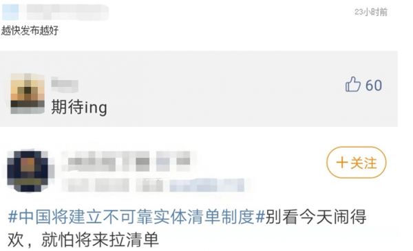 与昨天(7月12日)为外交部宣布制裁消息拍手叫好一样,在微博上,众多网友对这份清单充满了期待: