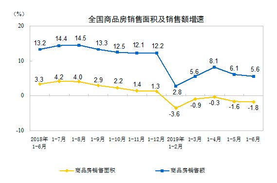 国家统计局数据显示,2019年1—6月份,全国房地产开发投资61609亿元,同比增长10.9%,增速比1—5月份回落0.3个百分点,开发投资连续2个月持续下降。