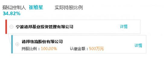 公开资料显示,宁波基业是德邦物流公司100%持股的控股子公司,德邦物流以500万元认缴注册资本,成立了宁波基业。