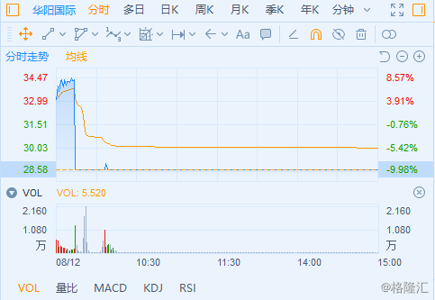 次新股华阳国际(28.580, -3.17, -9.98%)作为市场新任空间总龙头最近吸引了不少资金入坑,可今天该股早盘33.09元/股高开,随后跳水跌停至28.58元/股,市值蒸发8.8亿元。华阳国际5板后炸板天地,直线跌停,盘中振幅达19%。