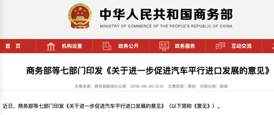 商务部、工信部等七部门近日印发《关于进一步促进汽车平行进口发展的意见》。