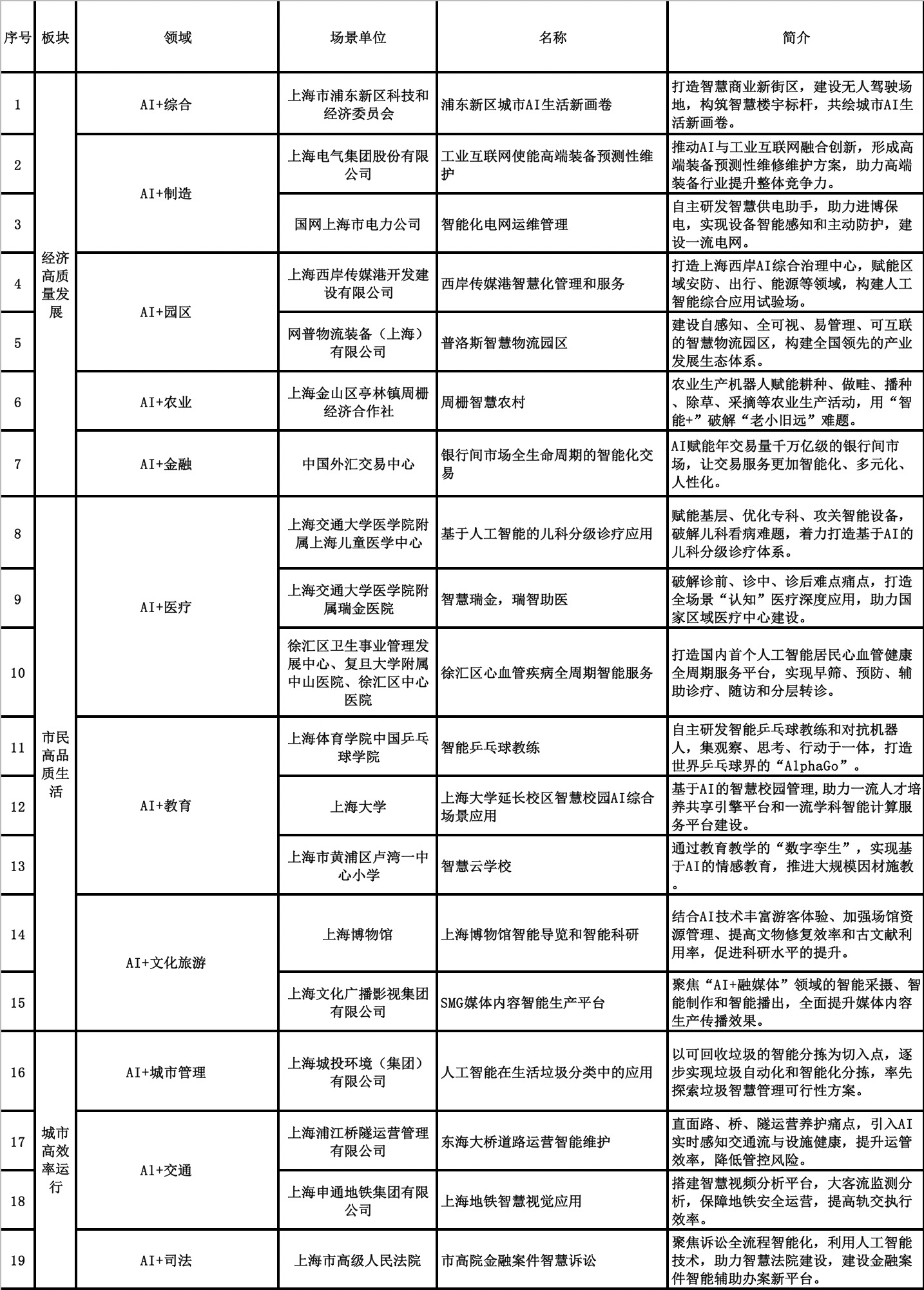 8月31日,在世界人工智能大会闭幕式上,上海正式对外发布了第二批人工智能试点应用场景,包括11个领域,共19个场景。