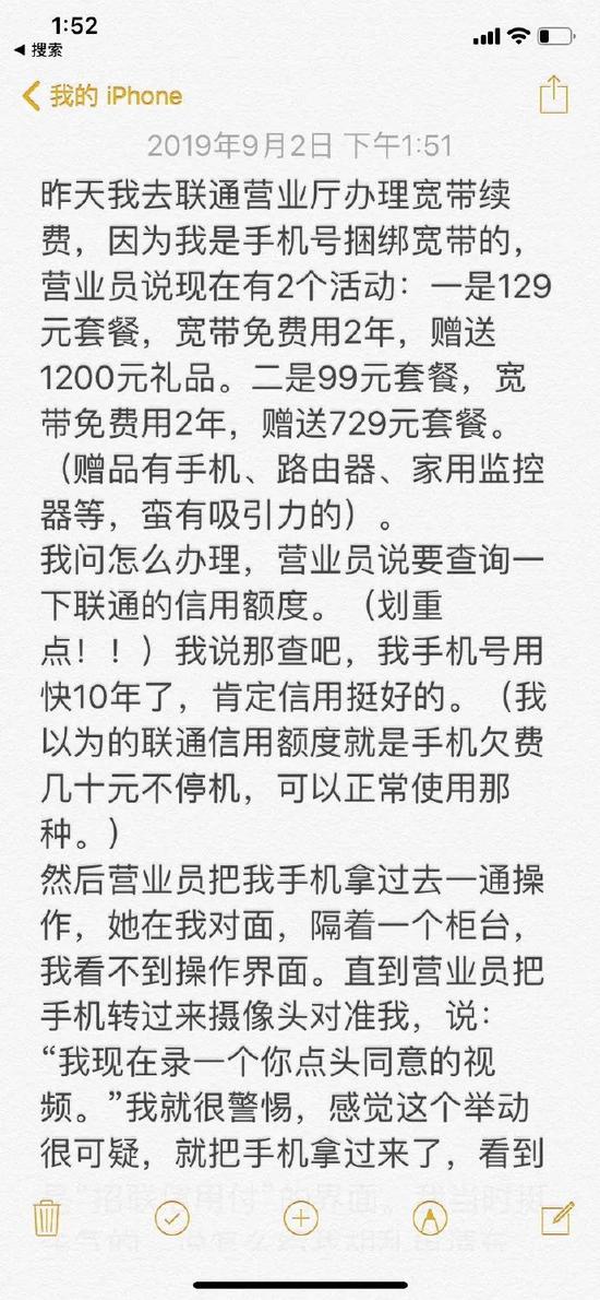 最近就有个网友分享了自己去联通办宽带的经历,本来只想在营业厅办个宽带续费业务,却险被联通工作人员办理成网贷。