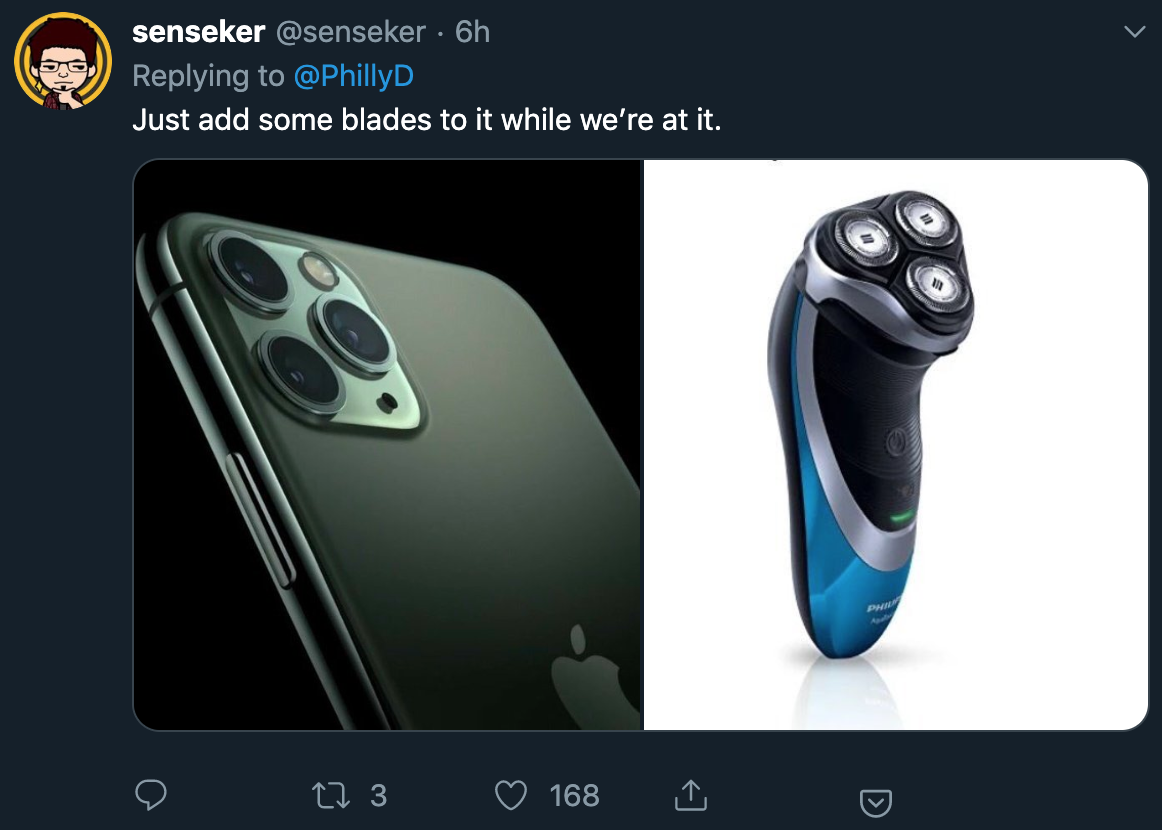 也有网友无法接受Pro的摄像头的形状:宛如浴霸或者是电动剃须刀口。
