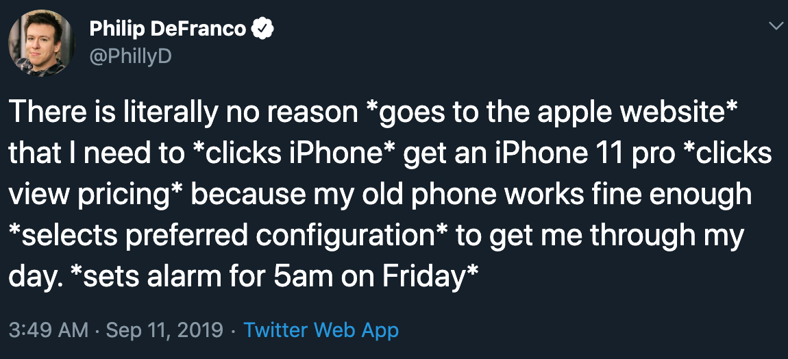网友们对此反应不一,有网友在推特上称:“完全没有必要打开苹果官网、点击查看iPhone 11详情、了解价格,因为我的老iPhone还用得很顺滑。”